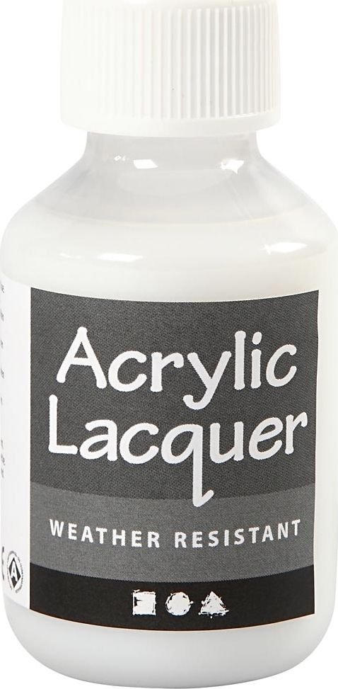 Väderbeständig, vattenfast/vattenavisande lack. Kan användas på de flesta målbara ytor. Torkar genomskinlig.