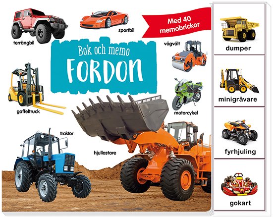 Ser du lastbilen? Eller grävmaskinen med skopa? I denna färgglada bilderbok får barnet lära sig namnen på olika fordon. Med de medföljande memokorten är det roligt att öva på de nya orden.