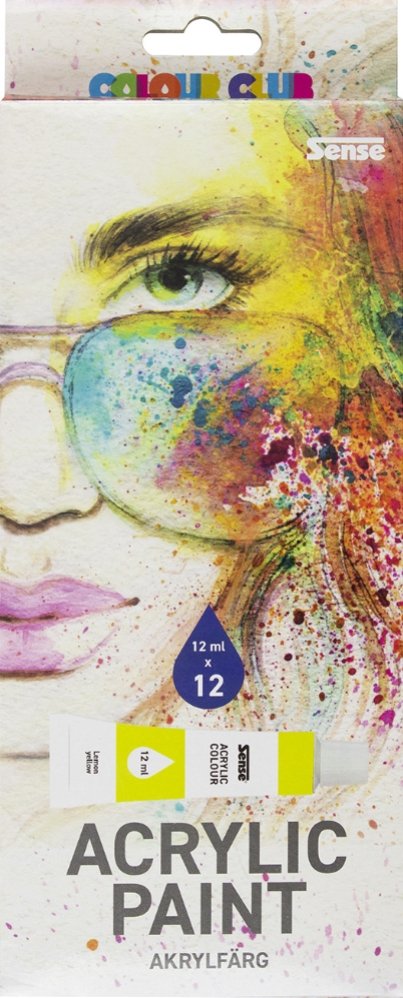 Sense Akrylfärg är perfekt för alla aspirerande konstnärer, oavsett nivå. Akrylfärgen kännetecknas av att den är snabbtorkande, färgstark och vattenlöslig. Setet består av 12 härliga färger som med fördel kan blandas med varandra för att skapa ytterligare kulörer.
