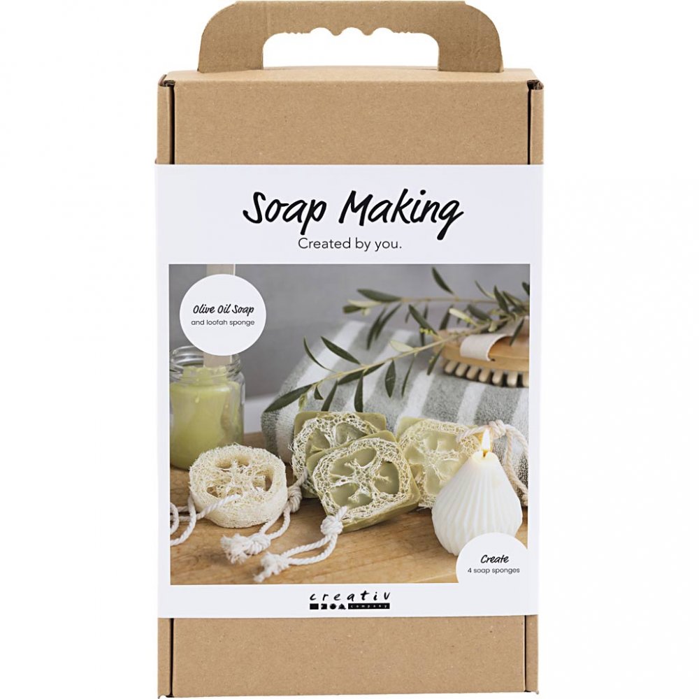 - Innehåll: Tvålmassa, loofahsvamp och material för tvåltillverkning