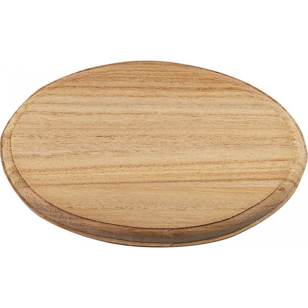 Oval, kraftig dörrskylt i trä med fräst kant.