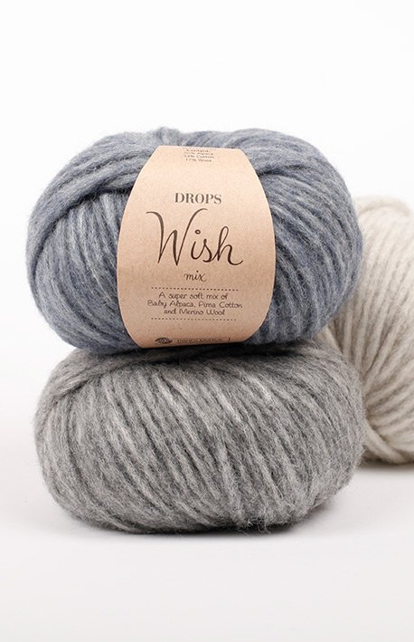 Ett vackert och tjockt “blow yarn” gjort av en kombination av babyalpaca, merinoull och pima bomull - DROPS Wish är mjukt, fluffigt och absolut klifritt.