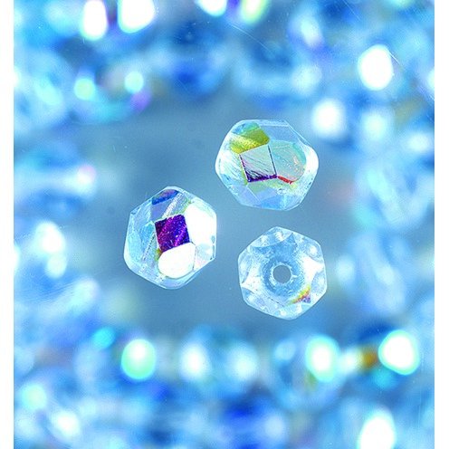 Glaspärlor facetterade - ljusblå -. runda, skimrande