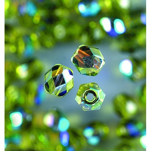 Glaspärlor facetterade - oliv - runda, skimrande