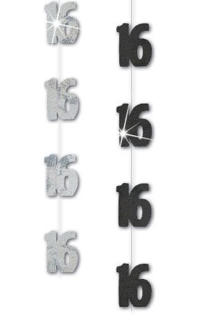 Hängande dekorationer till 16-årsdagen svart 1,5 m - 6 st