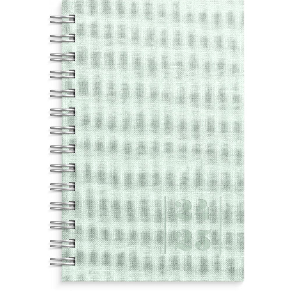 Omslag i linnetextil med präglat årtal som ger ett stilrent och elegant intryck. Den lilla praktiska veckokalendern!
