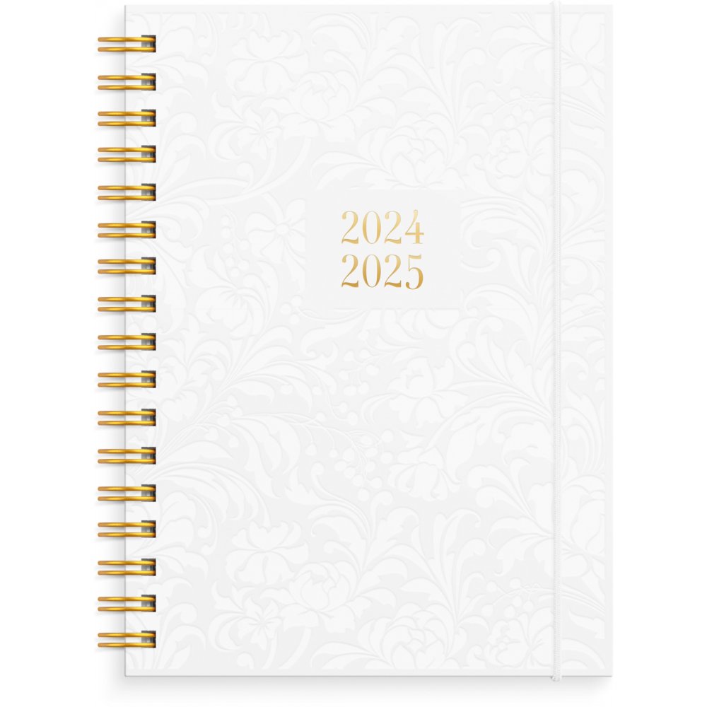 Kalender med en enkel stilren famsida framsida med ett effektfullt präglat mönster. Ett klassisk uppslag med liggande layout där fokus ligger på tydlig veckoplanering. Inlagan passar dig som har mycket på gång, oavsett veckodag. Kalendern är liten och enkel och med lika mycket utrymme för både vardag och helg.