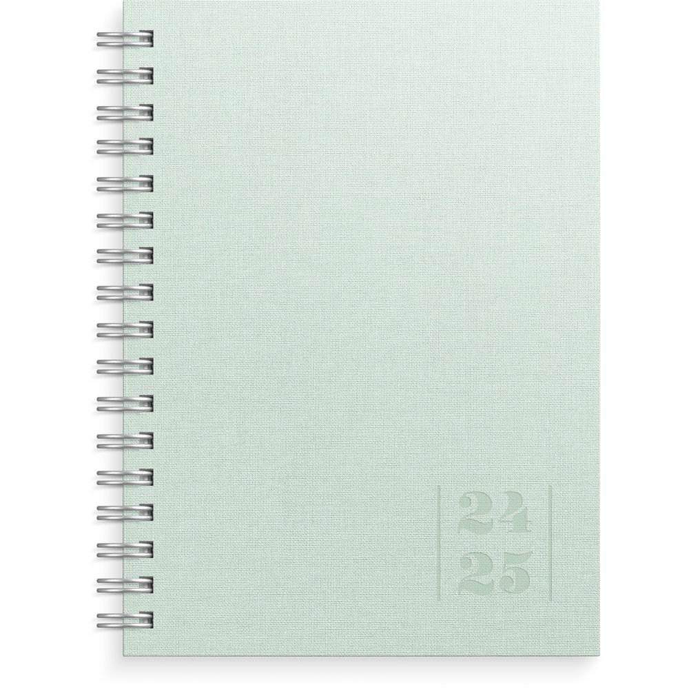 Omslag i linnetextil med präglat årtal som ger ett stilrent och elegant intryck. Ett klassiskt uppslag med liggande layout där fokus ligger på tydlig veckoplanering. Inlagans layout passar dig som har mycket på gång, oavsett veckodag. Kalendern är liten och enkel och med lika mycket utrymme för både vardag och helg.