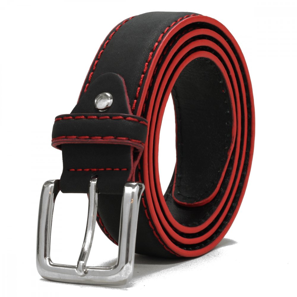 Läderbälte med röda sömmar - Svart - 105 cm
