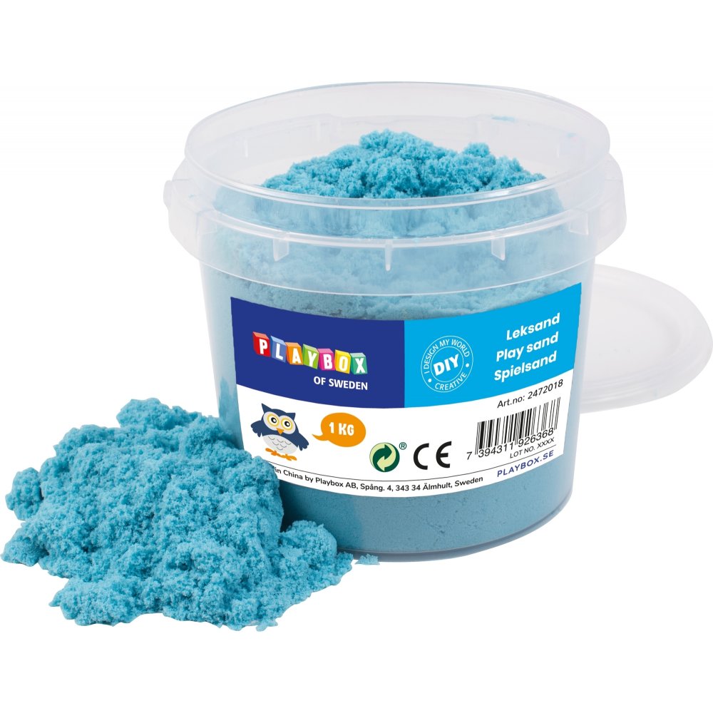 Leksand, ljusblå. Mjuk magisk sand som är lätt att forma så den håller formen. Magisk sand är perfekt för att vara kreativ utan att bli kladdig eller smutsig. Sanden bidrar till taktil stimulans och sensorisk lek.