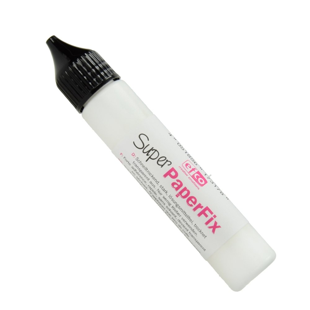 PaperFix Super lämpar sig för limning av papper och kartong. Produktegenskaperna inkluderar det faktum att limmet är lösningsmedelsfritt, mycket vidhäftande, snabbtorkande och transparent. Använd endast en liten mängd lim vid bearbetning.