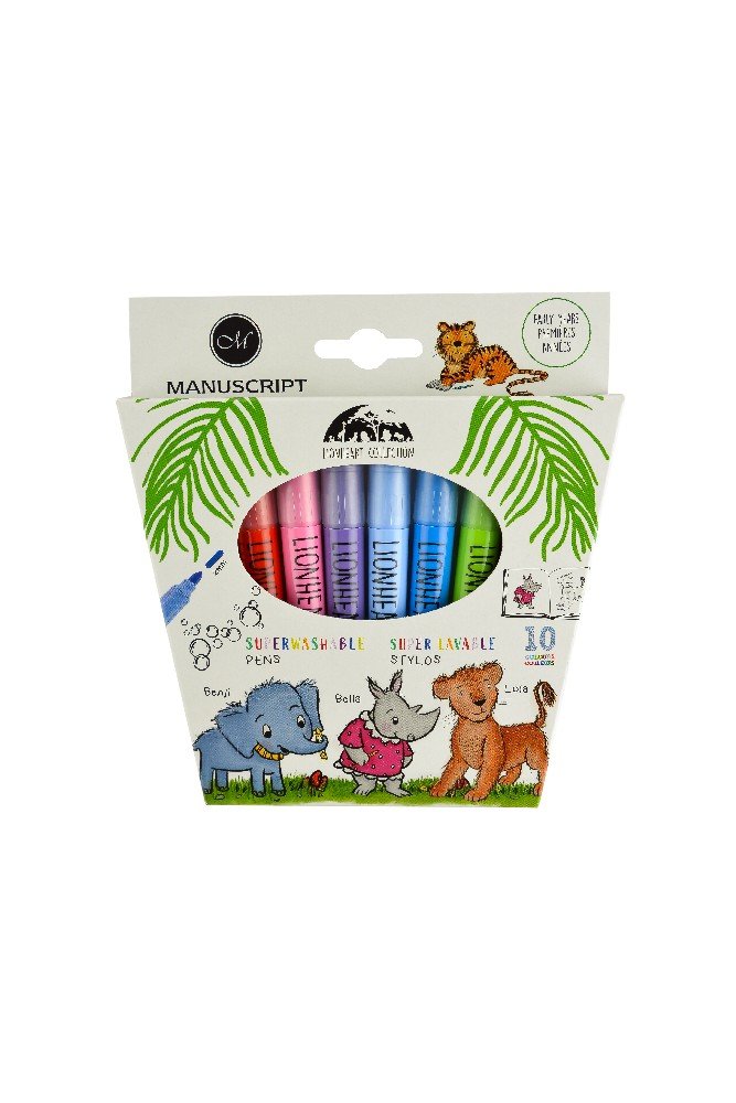 Dessa roliga Superwashable pennor är de perfekta färgpennorna för barn. Med detta smarta bläck behöver du inte oroa dig för någon röra eftersom det enkelt tvättas av från huden och de flesta ytor med bara vatten! Möt Lionheart-familjen, Manuscripts skriv- och färgutbud. Lionheart-familjen består av tio roliga och spännande karaktärer som hjälper barnens kreativa utveckling. Följ med Arthur, safarikungen och hans vänner när de åker på en resa och uppmuntrar barn att skriva och rita med roliga och spännande produkter.