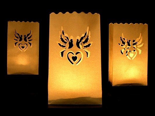 Ljuslykta av papper - Duvor 26 cm 10 st
