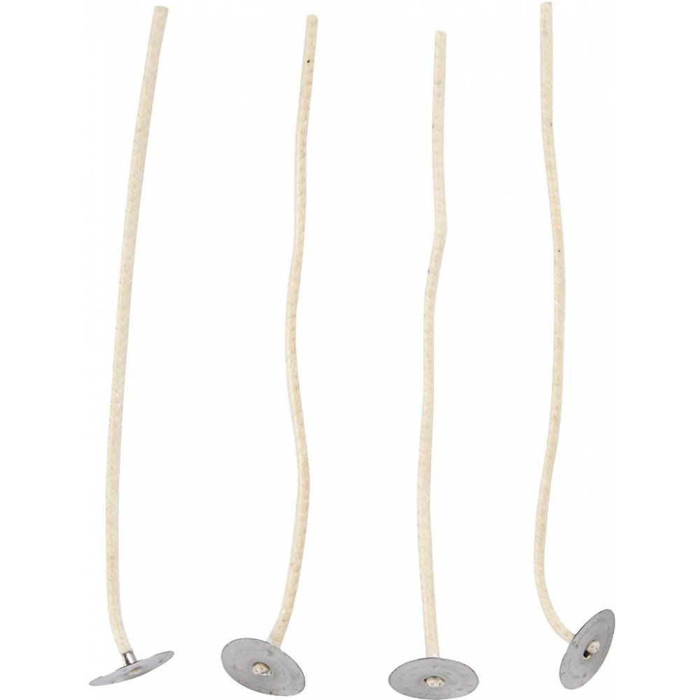 Bomullsvekar med metallfot används vid tillverkning av ljus i behållare. De är förbehandlade med vax för att vara enkla att använda och ger en stabil och jämn bränning i handgjorda ljus.
