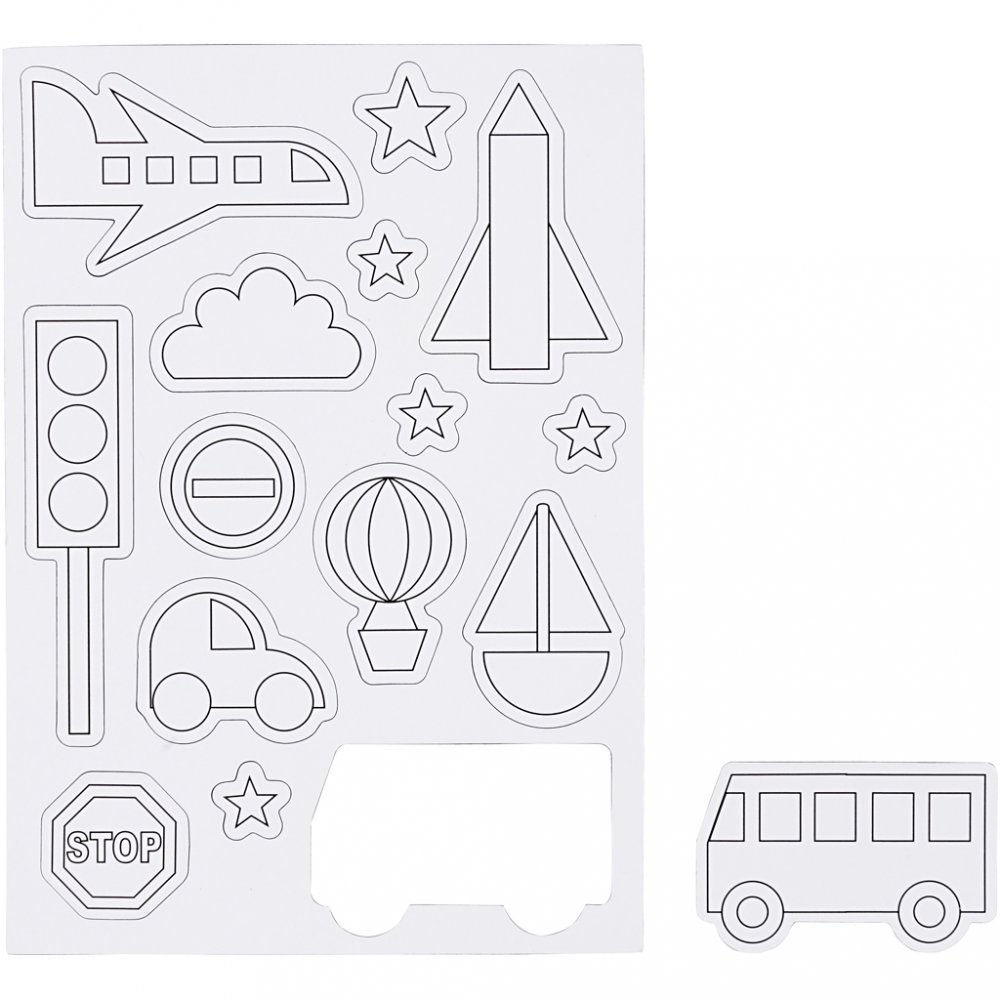 Magnetfigurer med transportmotiv som kan färgläggas och dekoreras efter eget önskemål. Figurerna levereras på ett ark och är enkla att trycka ut och använda.