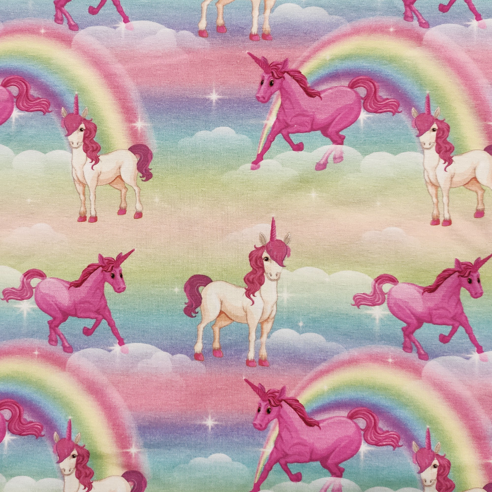 Mönstrad trikå 145 cm - Rainbow unicorn