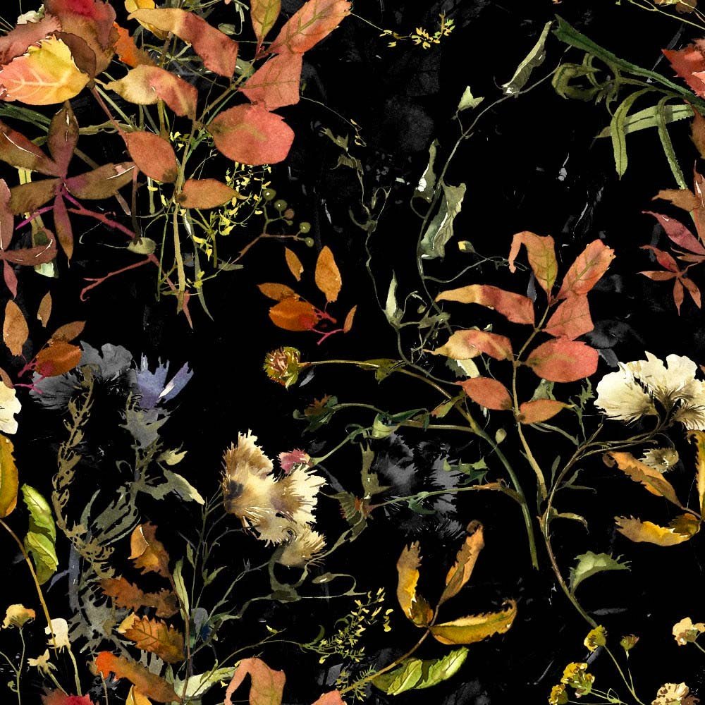 Mönstrad Trikå 150 cm - Löv symfoni sot