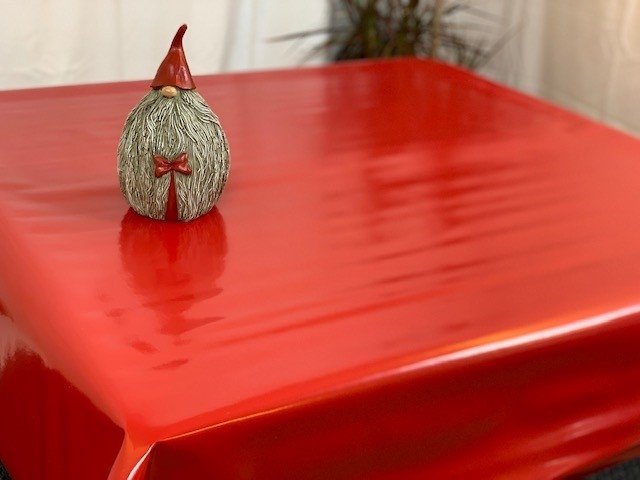 Enfärgad vaxduk i mörkröd/engelsk röd färg! -Vaxduken är lätt att torka av och perfekt att ha inomhus och på trädgårdsmöblerna.-Går att få som rund (diameter 140cm)-Gammaldags Vaxduk med lite flossad baksida, halvblank yta, mjuk och smidig.-Miljögodkänd av Oeko