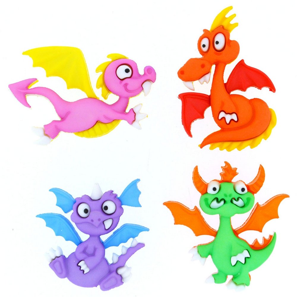 Multifärgade knappar 32x22 - 32x27 mm - Drakar