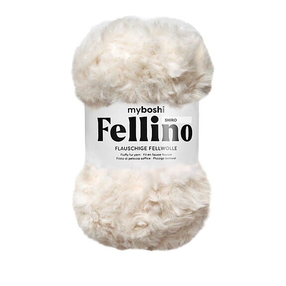 Hög gosfaktor! Myboshi Fellino är den mjukaste och fluffigaste ullen i myboshis hantverksvärld. Oavsett om det är för kläder eller amigurumis, kan du använda dem för att virka och sticka och du kommer att se fram emot resultatet så fort du bearbetar dem.