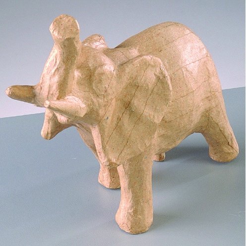 Figur av papp. Kan dekoreras med exempelvis dekorsten, färg, tyg etc. Form: Elefant.