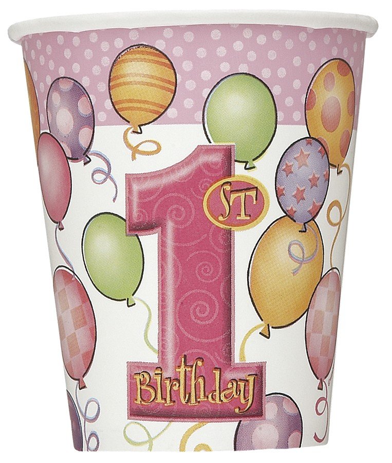 Pappersmuggar - Första födelsedagen rosa - 27 cl 8 st