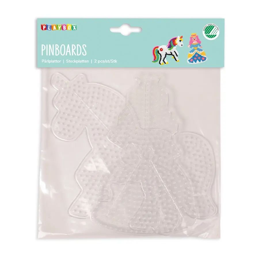Skapa magiska motiv med dessa svensktillverkade pärlplattor i form av en enhörning och en prinsessa. De transparenta plattorna gör det enkelt att placera mönsterkort under och följa designen steg för steg.