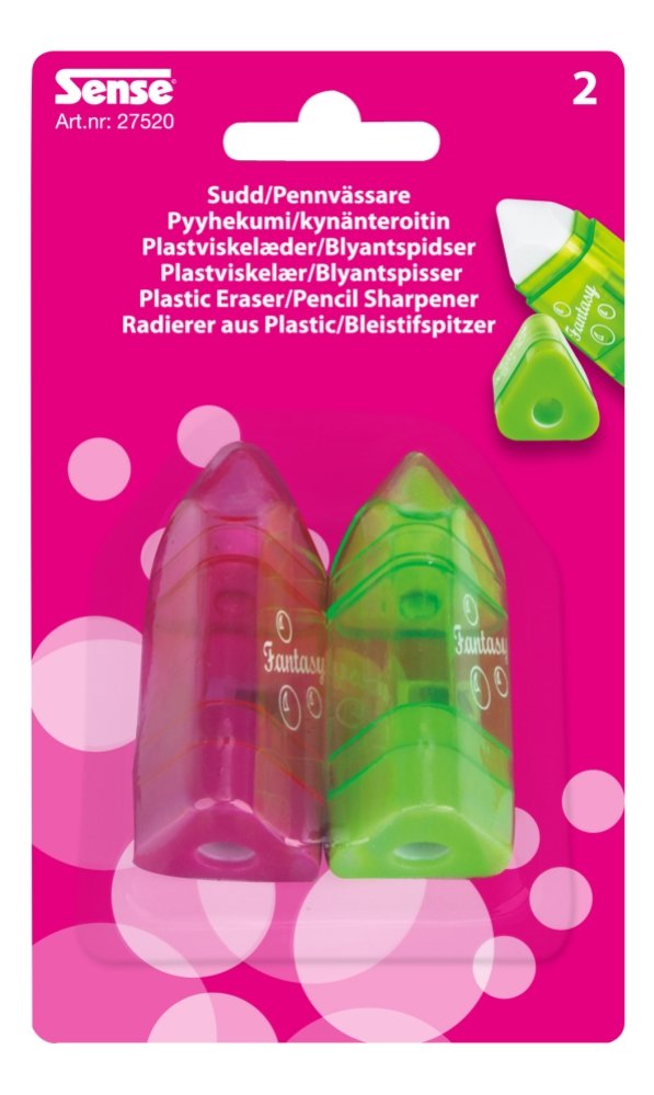 Set om 2 stycken klassiska pennvässare med uppsamlare och inbyggt suddgummi.