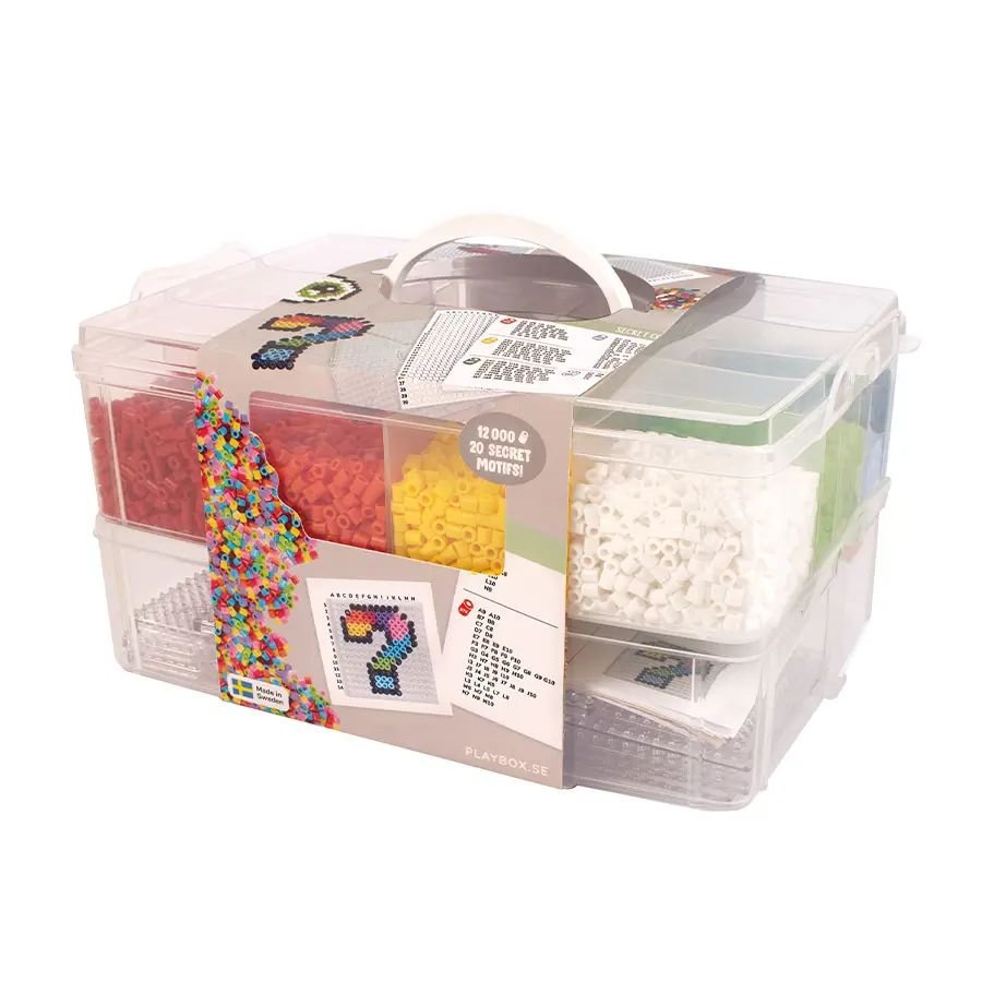 Låt kreativiteten flöda med denna unika pysselväska där varje projekt blir ett spännande mysterium! Följ koden på kodkorten och pärla steg för steg för att avslöja en hemlig bild som växer fram under arbetets gång.