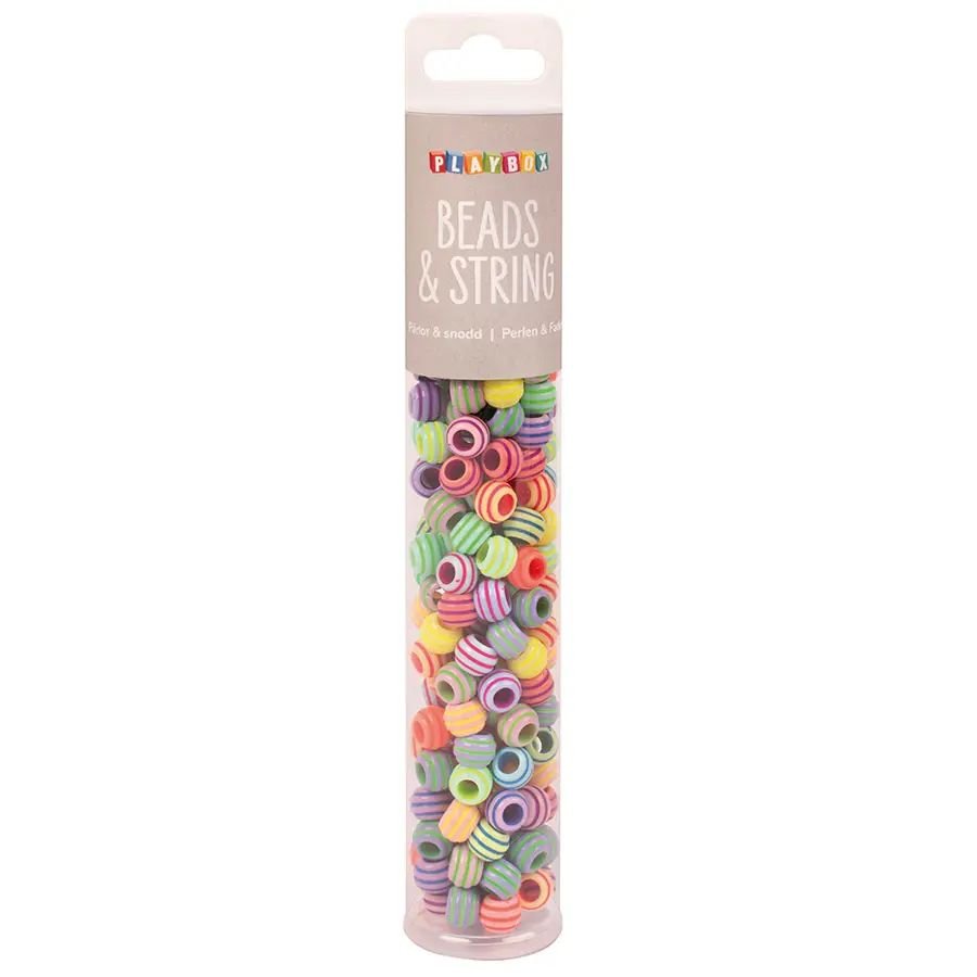 En härlig blandning av randiga pärlor i mjuka pastellfärger som inspirerar till färgglada och lekfulla kreationer. De runda pärlorna är enkla att trä och passar perfekt för att skapa smycken, dekorationer och andra kreativa projekt.