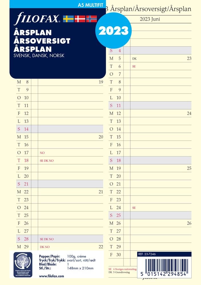 Refill Till Systemkalender A5 2023 - Årsplan
