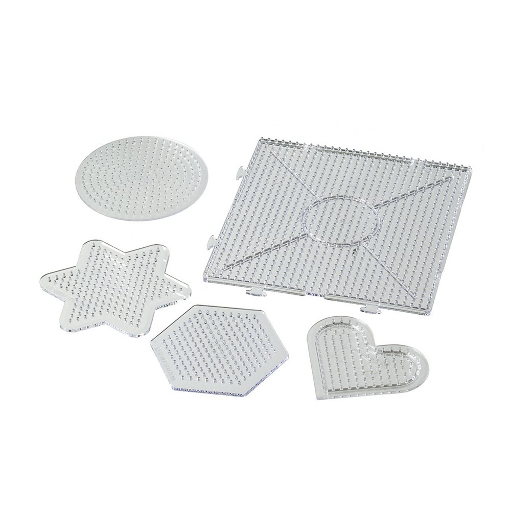 Set med pärlplattor i olika former 8,5x7,5 cm / 15x15 cm - 5 transparenta delar