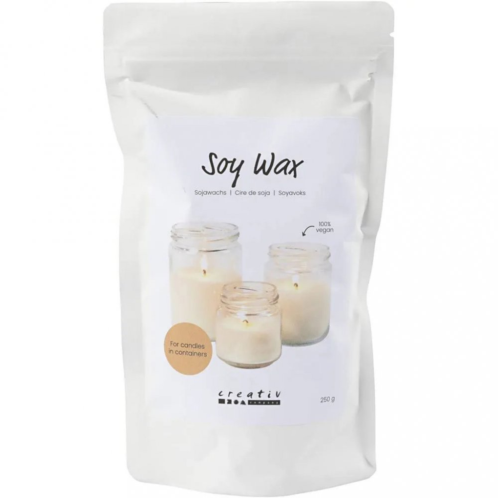 Sojavax är ett vegetabiliskt alternativ som lämpar sig väl för ljusgjutning i olika typer av behållare. Det färdiga ljuset får en jämn yta och passar bra för användning i hemmet eller som handgjord present.