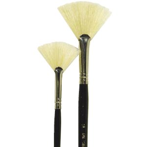 Solfjäderspensel av svinborst med långt svart skaft. Lämplig för olja och akryl. 1 st pensel tillkommer vid köp.