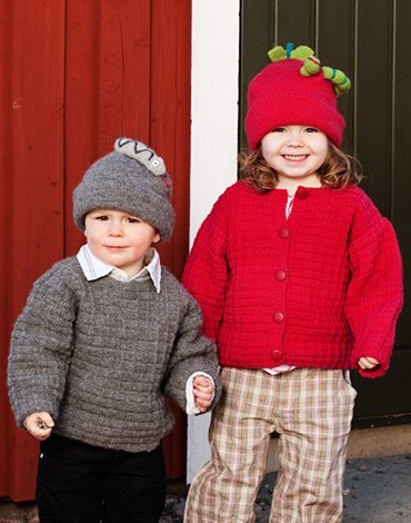 Stickmönster - Kofta och tröja samt äpplemössa med larv och mössa med orm