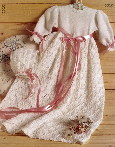 Stickmönster - Stickad dopklänning och mössa