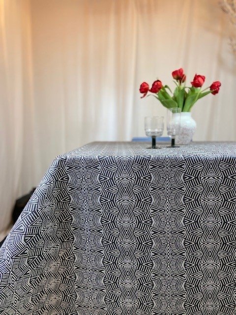 Geometrisk avtorkningsbar vaxduk av bästa kvalitet! Gör sig snygg både på stora eller små bord såsom runda!Avtorkningsbar acrylatbehandlad textilvaxduk, tillverkad i bomull/polyester.Tvättråd: Tvättas i max 30 grader utan sköljmedel, låt dropptorka, ingen torktumling.När duken torkat så stryck den på baksidan, ej framsida för då förstör ni acrylatbehandlingen.