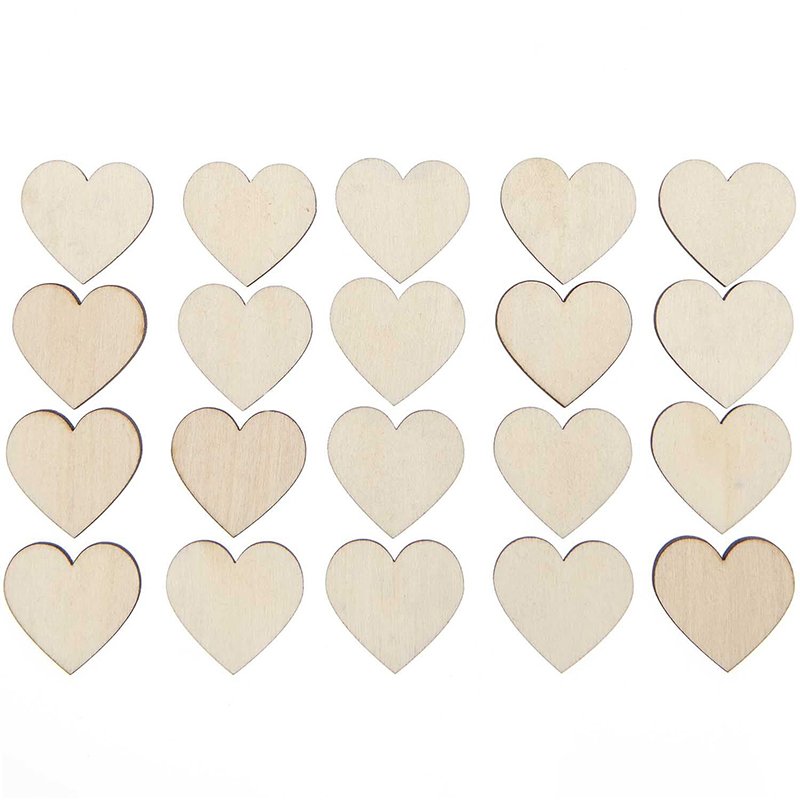 20-pack med små trähjärtan på 30*28 mm. Används tillsammans med gästboksram.