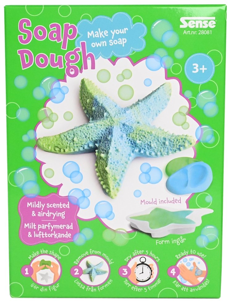 Skapa dina egna unika tvålar med detta roliga och enkla pysselset! Med den lufttorkande leran kan du forma fina figurer som både blir dekorativa och fungerar som helt vanliga tvålar när de har torkat. Använd den medföljande formen med sjöstjärnemotiv eller låt fantasin styra och skapa dina egna små konstverk.