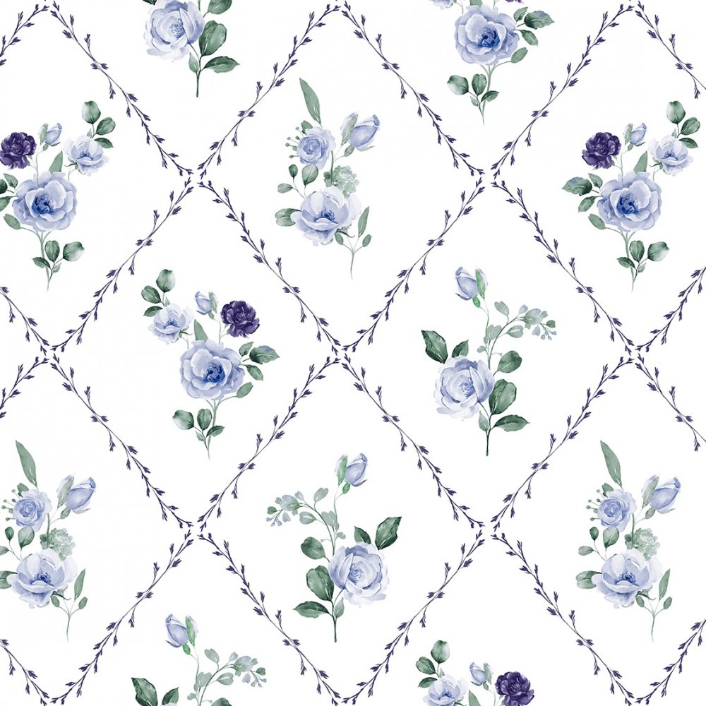 Vaxduk med Blomruta motiv - Blå