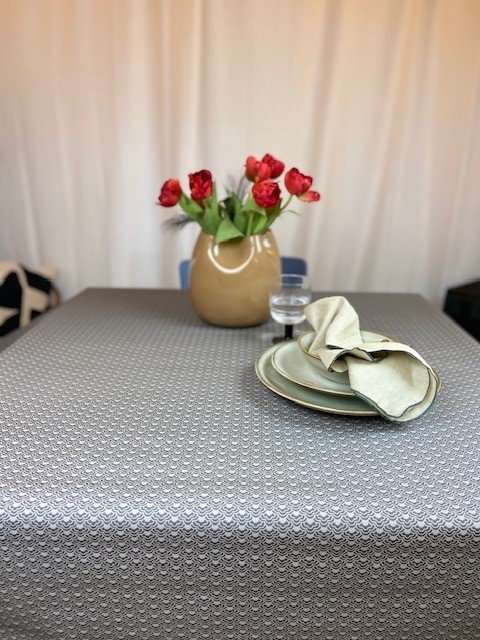 Vaxduken säljs som metervara vilket gör att längden kan anpassas efter bordets storlek. Den mjuka, flossade baksidan gör att duken ligger stabilt på bordet och fungerar bra både inomhus och utomhus.