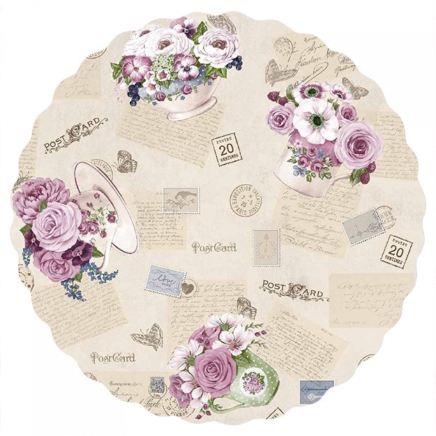 Vaxduk PVC Rund Blommor/Brev - Rosa